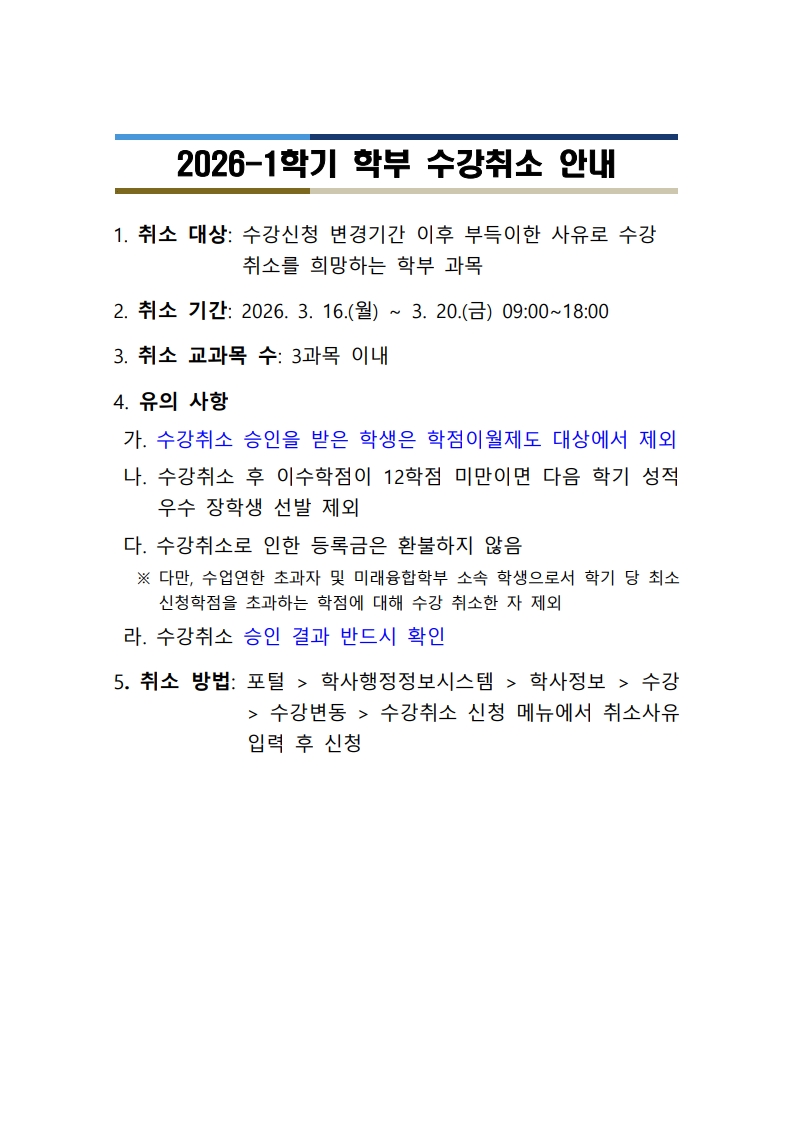 2026-1학기 학부 수강취소 안내