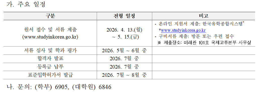 2026학년도 2학기 외국인 학부 및 대학원(특수·